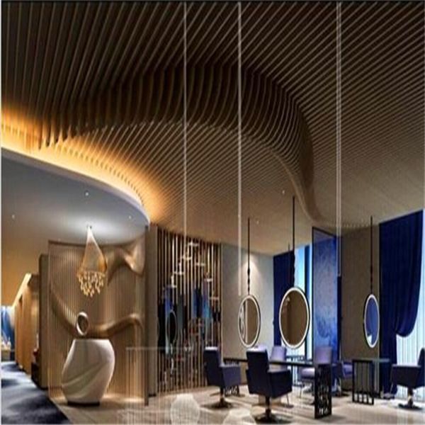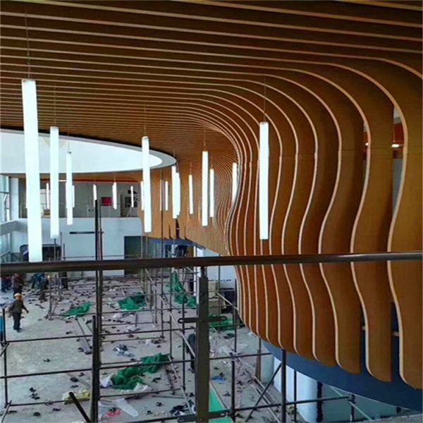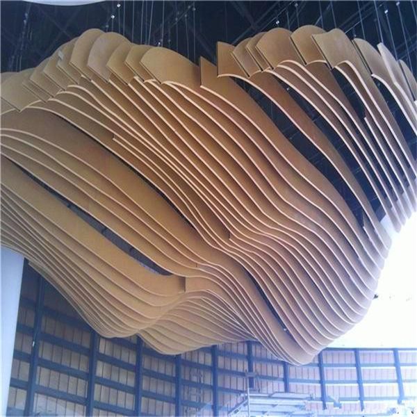 用鋁單板制作弧形異形方通天花時(shí),要求材料的厚度至少是在2.0以上,通常性價(jià)比比較高的是采用2.5mm厚的鋁板材。