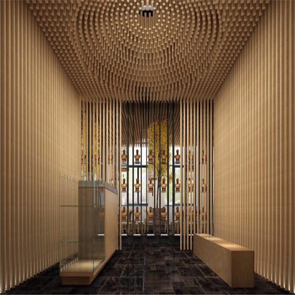 鋁圓管天花是一種裝飾性垂簾型吊頂天花。鋁圓管在于具有開闊的視野,線條飄逸,通透,層次感好,視覺效果能產生夢幻線條美的感覺;鋁圓管吊頂在于在材質